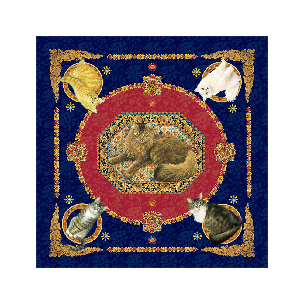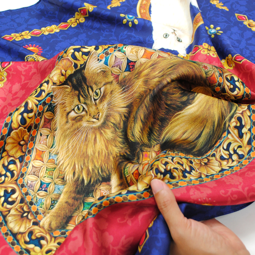 ディアカーズ シルクスカーフ-アイボリーキャッツ