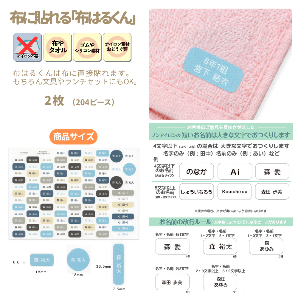 ・布はるくん 小サイズ・名前のみ:2シート(204ピース)