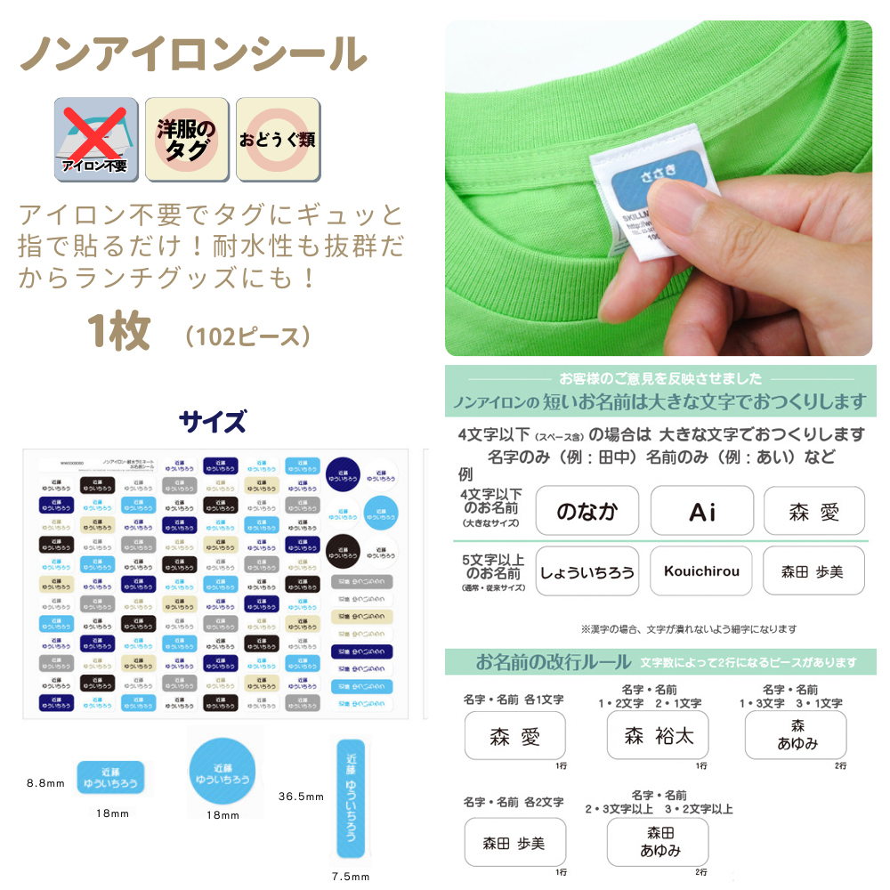 - ・ノンアイロン・耐水ラミネートお名前シール-名前のみ・オリジナル 小サイズ・名前のみ:1シート(102ピース)