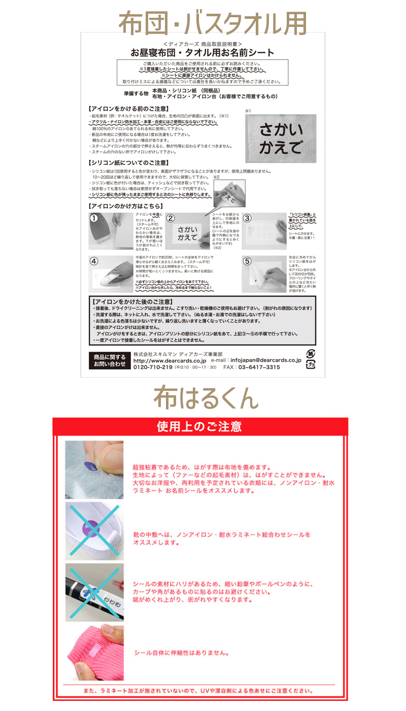 お昼寝布団・バスタオル用お名前シート>ポリウレタンフィルム