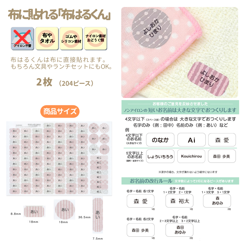 - ・布はるくん 小サイズ・名前のみ:2シート(204ピース)