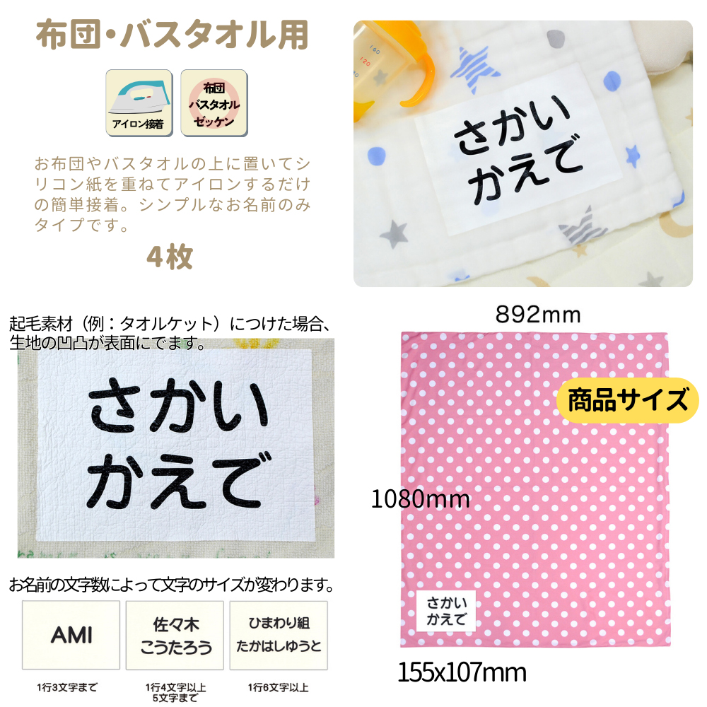 ・お昼寝布団・バスタオル用お名前シート(文字のみタイプ)4枚