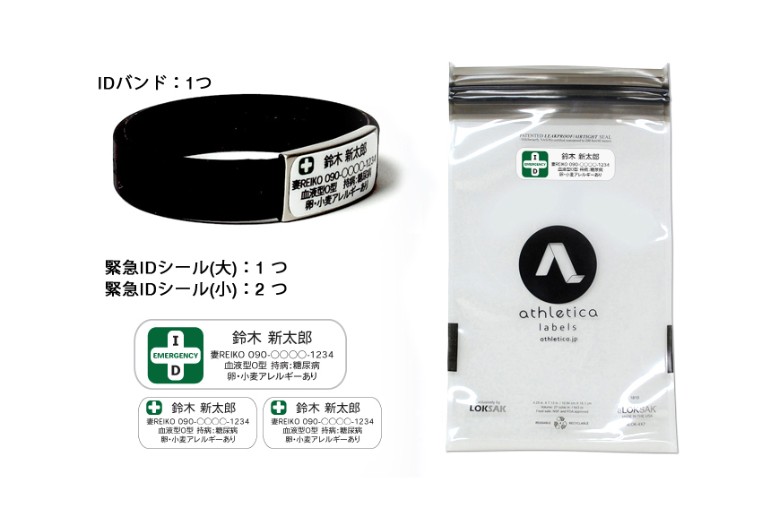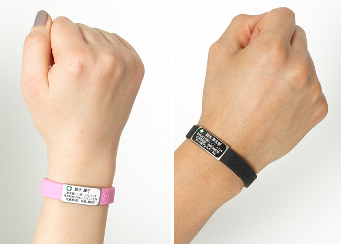 ・基本的に、ご入力頂いた文字がそのまま印字されますが、見やすさのため、行を増やしたり、印字する場所を変更する場合がございます。 お名前:通常、一番上の行はお名前を入れていただきます。海外でご使用される可能性がある場合はローマ字での記入をおすすめします。緊急連絡先:電話番号や携帯電話番号は非常時に必要な情報の一つです。数字の間にハイフン「-」を入れていただくと、読みやすいようです。海外で使用される可能性がある場合には、都道府県やJapanなど国名を記入される事をおすすめします。アレルギー、持病など:薬や食べ物のアレルギーや持病(喘息、糖尿病、高血圧等)がある方はご記入いただく事をおすすめします。血液型:輸血等が必要な場合、非常に役に立つ情報です。この他にも、主治医、かかりつけの病院、病名の略語など、ご希望に応じて印字します。海外で使用される可能性がある場合には、都道府県やJapanなど国名を記入される事をおすすめします。 - ■備考