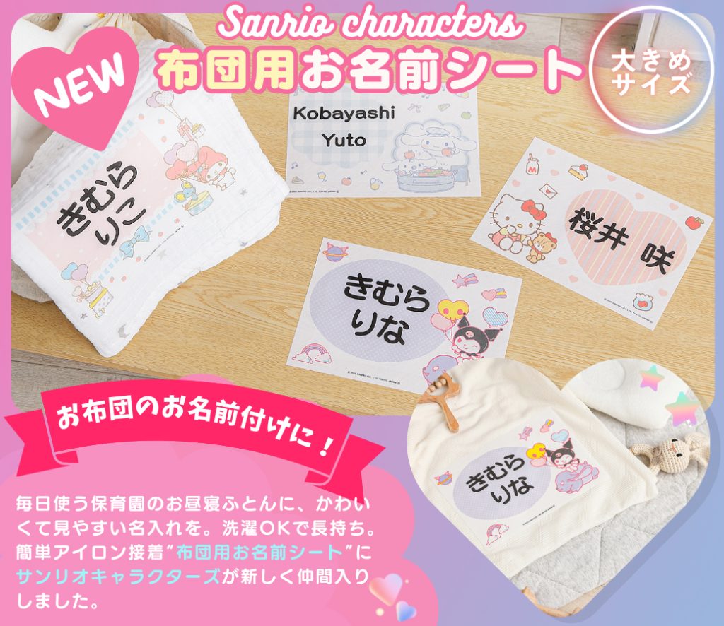 サンリオキャラクターズの布団用お名前シートが新登場。