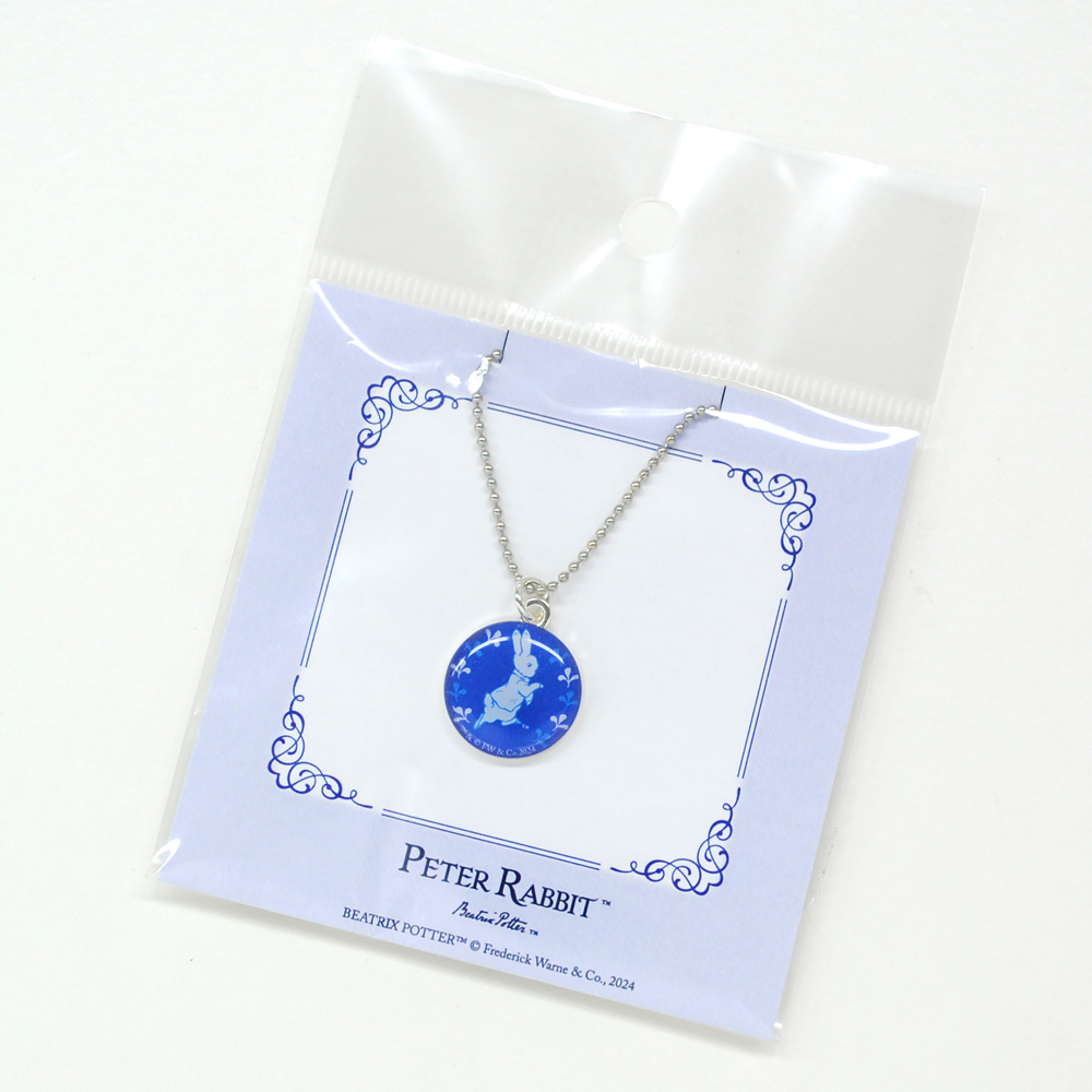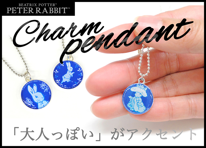 ピーターラビット(TM)の世界をブルー&ホワイトの色づかいで表現したチャームペンダント。シンプルな仕様で、カジュアルスタイルにもぴったり。 お守りのように毎日でも身につけてほしいアクセサリーです。 家族やご友人とお揃いで身につけていただいても素敵です。