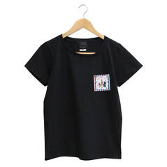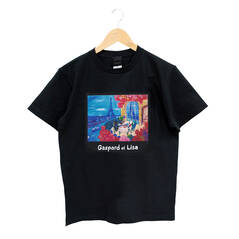 黒地のTシャツに左胸ワンポイントでカラー印刷を施した、リサとガスパールTシャツ「トリコロール&エッフェル塔」。首元は広めですっきりしたシルエット。サイズはM・L展開。